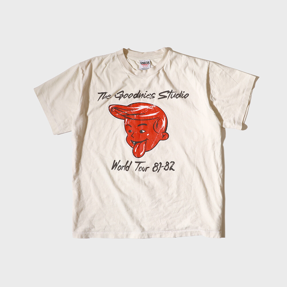 베이스 티셔츠로 유명한 미국의 oneita사(2005년 도산)의 80s 티셔츠 라벨을 오마주하여 직조 하여 제작하였습니다.