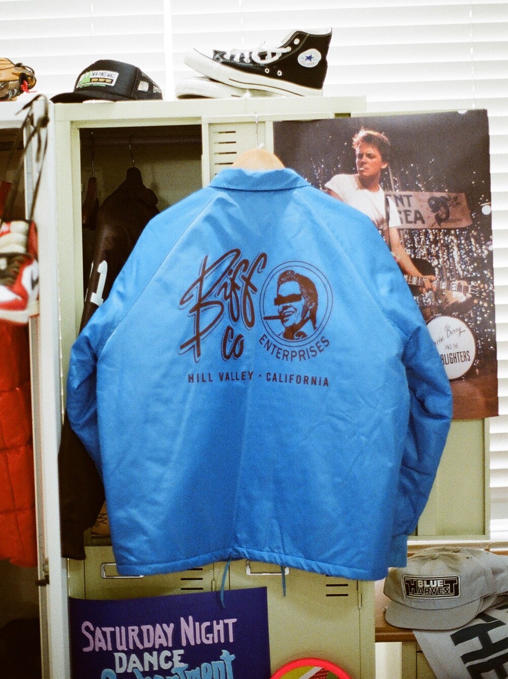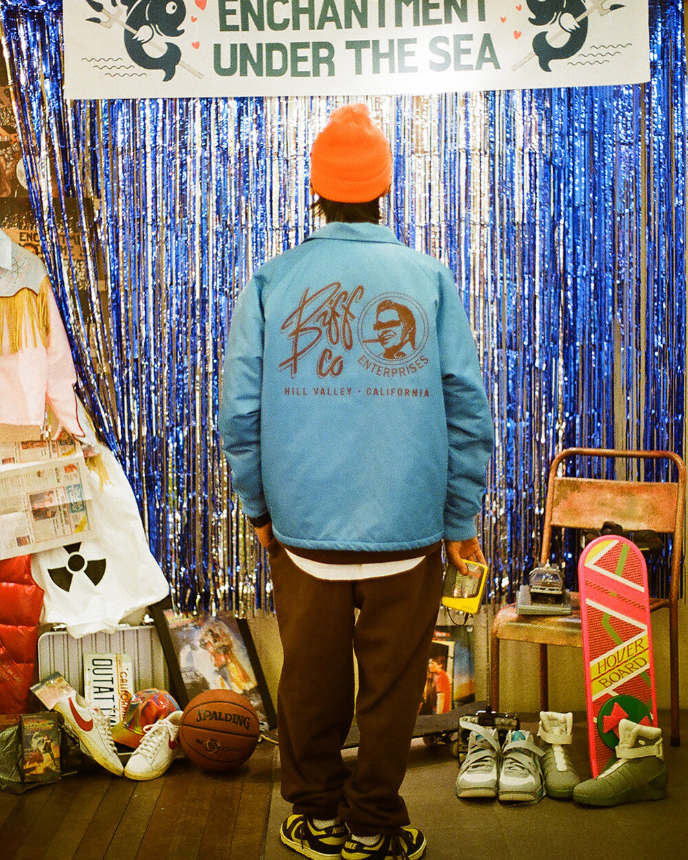 프린팅의 경우는 백투더퓨처 영화 속 아이콘들을 오마쥬해서 각 자켓별로 의미를 다르게 두고 제작되었습니다.