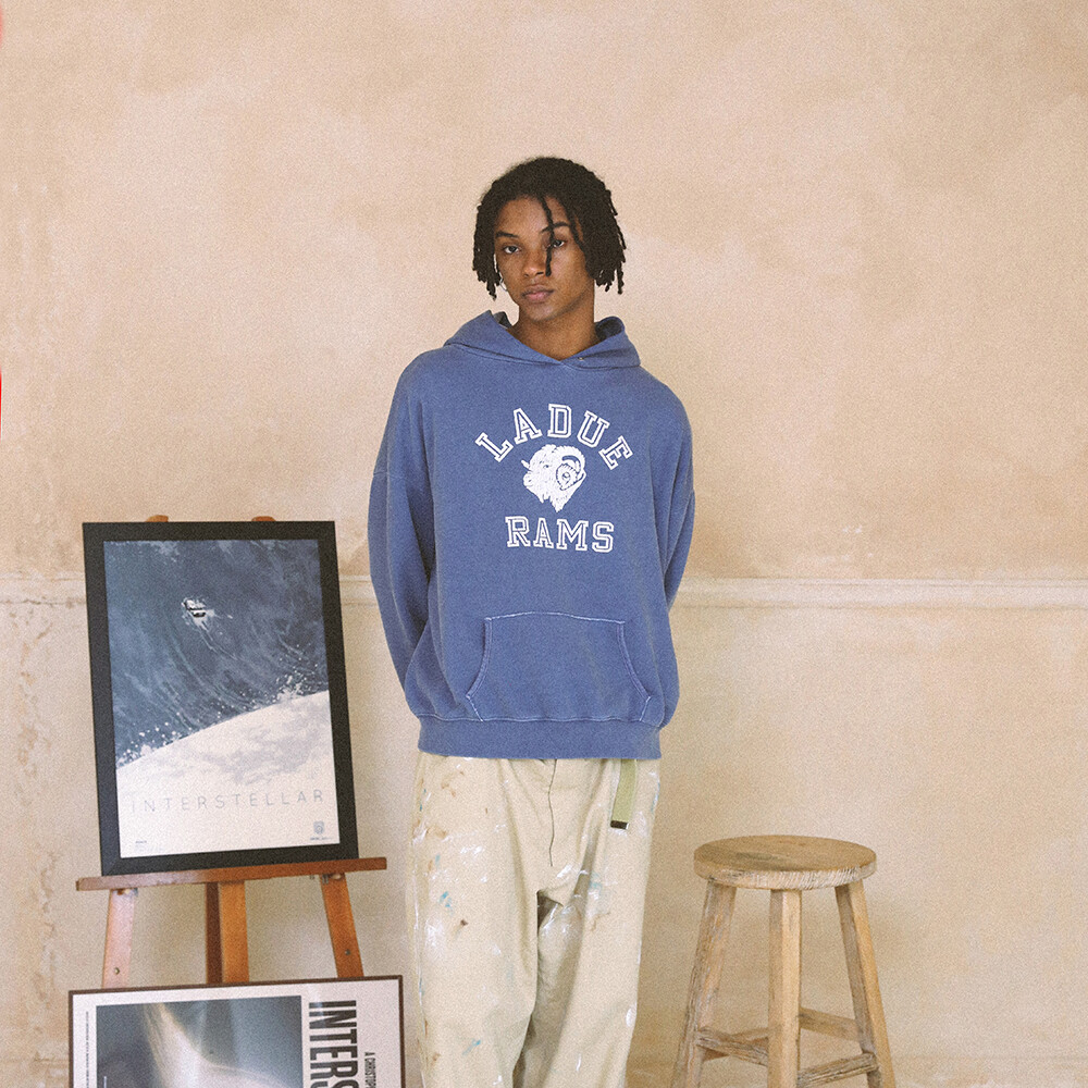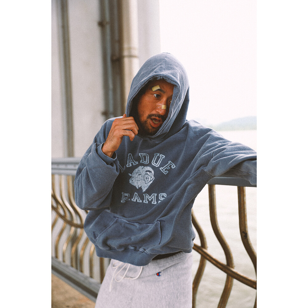 *GOODNIES _ “Wormhole" VINTAGE HOODIE. Sunfade DarkBlue