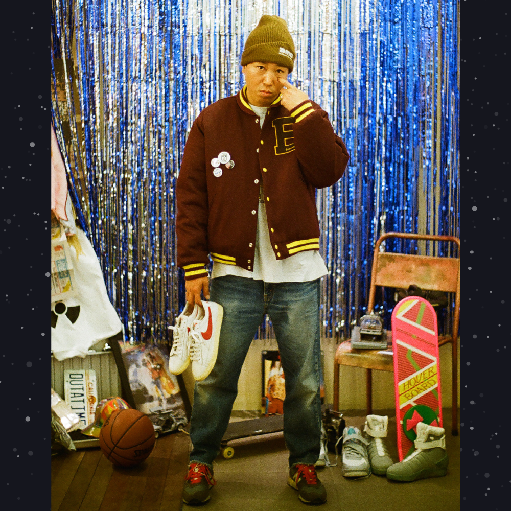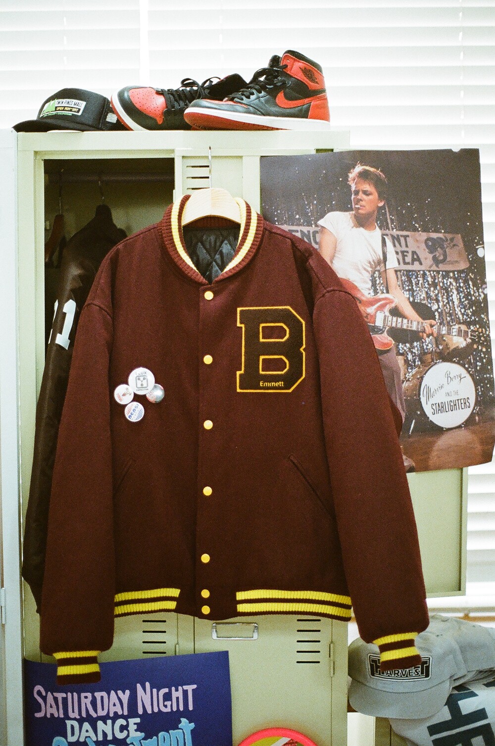 영화 속 브라운 박사가 어린 학생시절 착용했다는 상상을 베이스로 제작한 바시티 자켓.