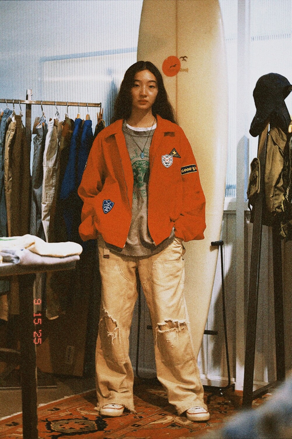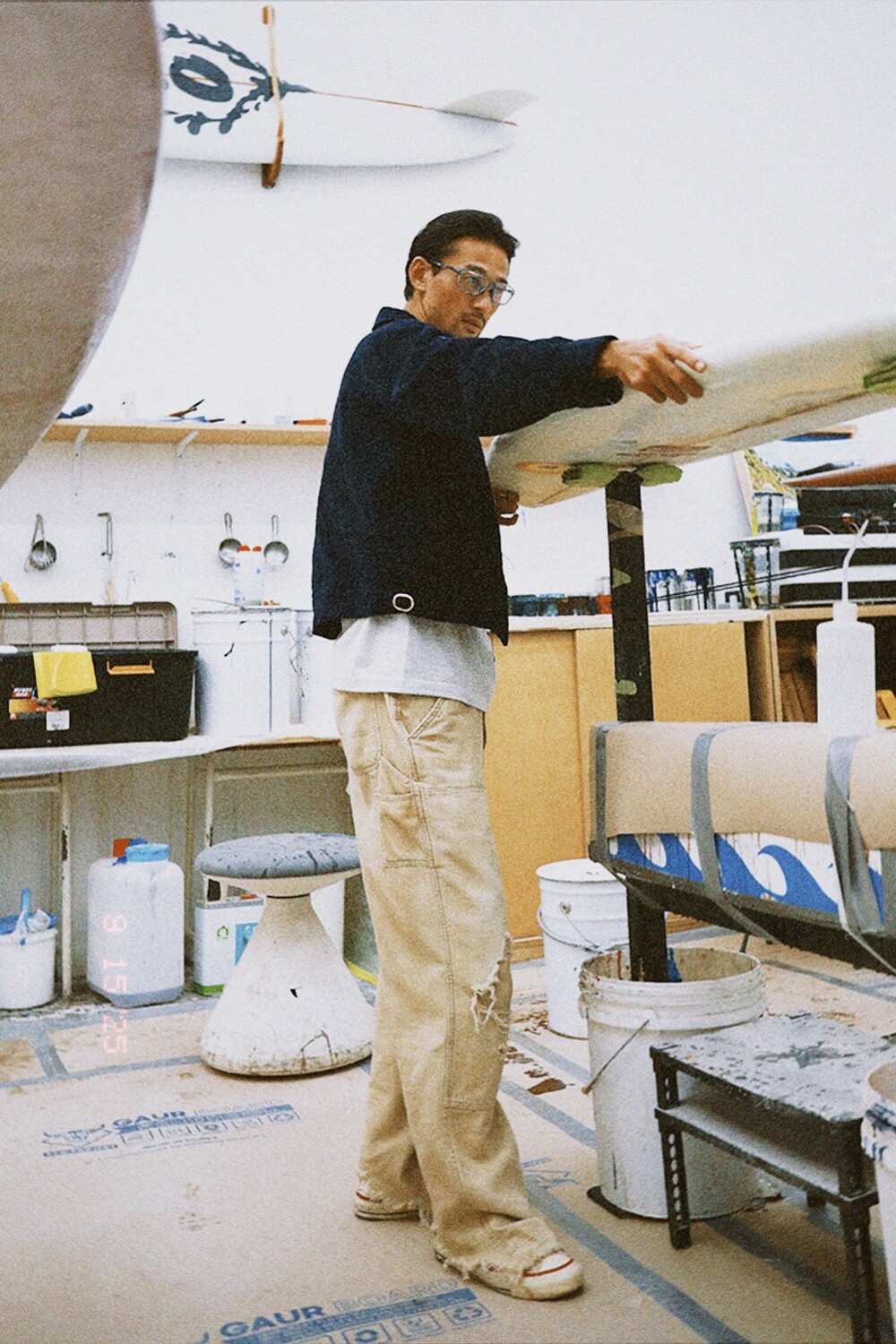 워크웨어의 상징인 더블니 디테일에 뜨거운 태양빛에 바랜 듯한