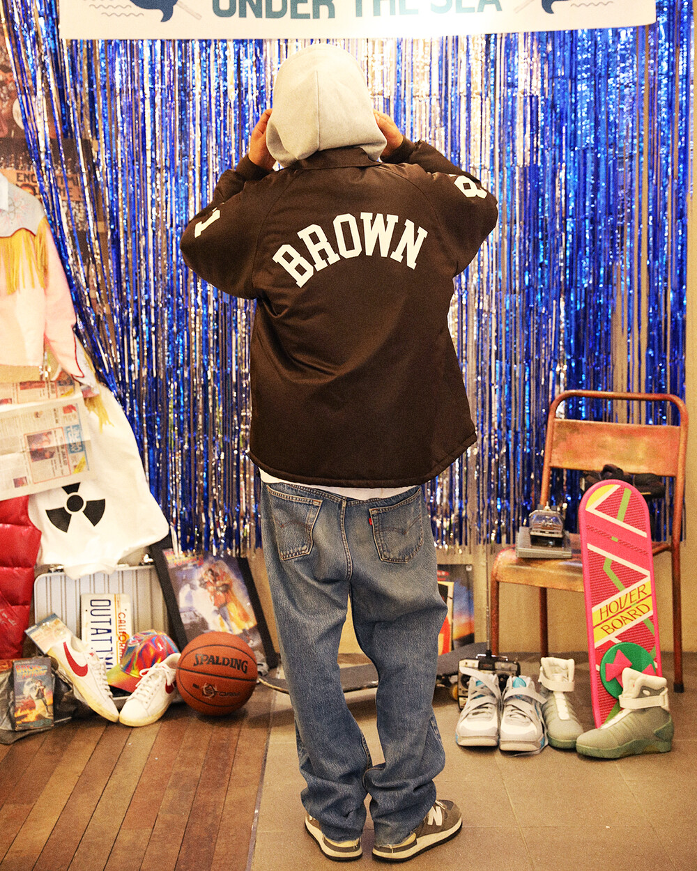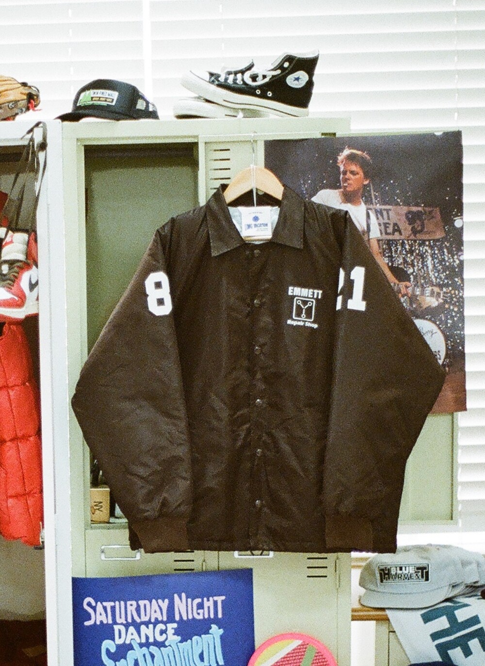 프린팅의 경우는 백투더퓨처 영화 속 아이콘들을 오마쥬해서 각 자켓별로 의미를 다르게 두고 제작되었습니다.