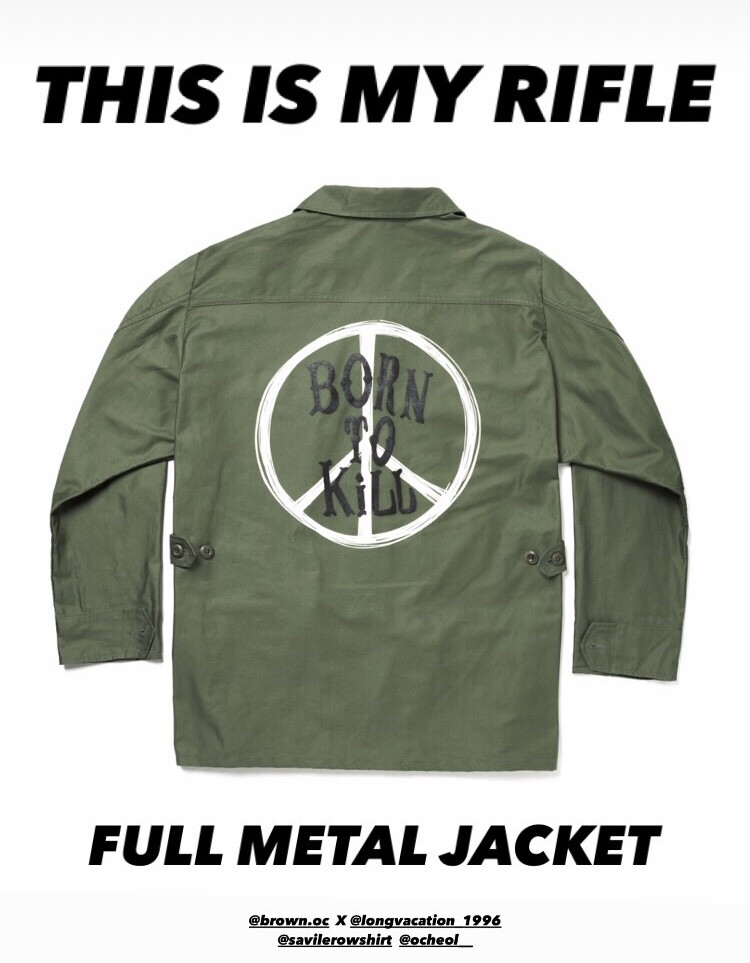 #풀메탈자켓 영화의 상징적인 메시지와 대사를 자켓에 삽입하였고