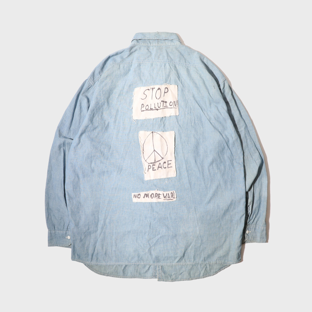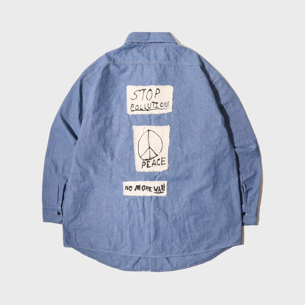 *GOODNIES _ “No More War!" Chambray Shirt
