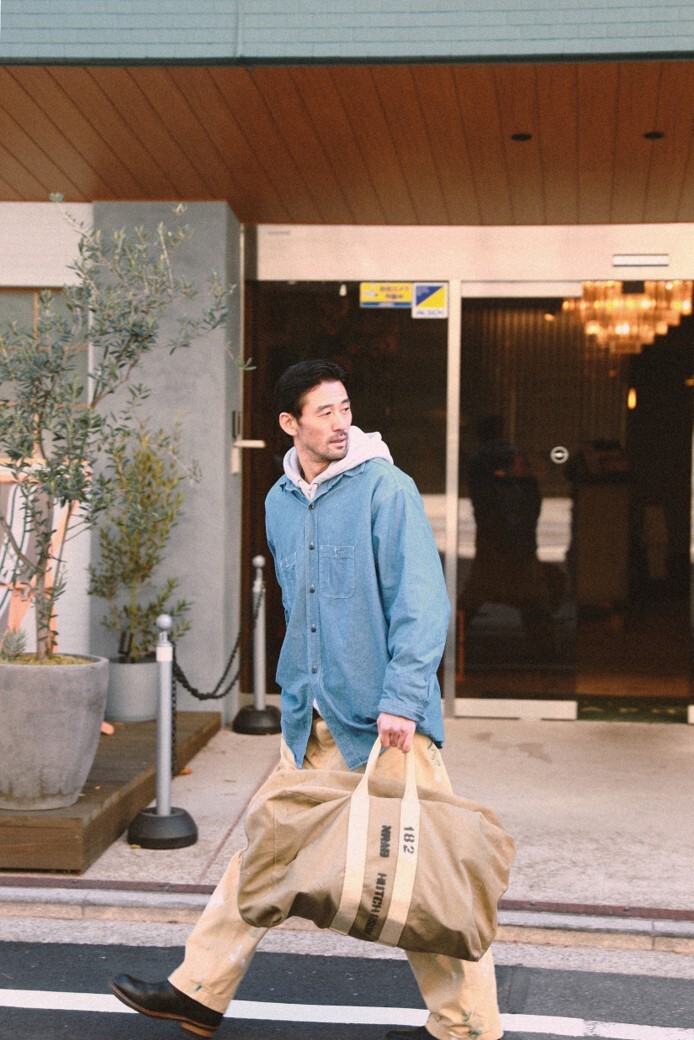 셔츠 사이드 커브 부분의 실루엣 변형과 원본이 엄청난 빅사이즈 였기에 전체적으로 드레스셔츠 같은 분위기를 냄과 동시에 빈티지 워크셔츠 무드를 가져가는것의 밸런스에 신경을 썼습니다.