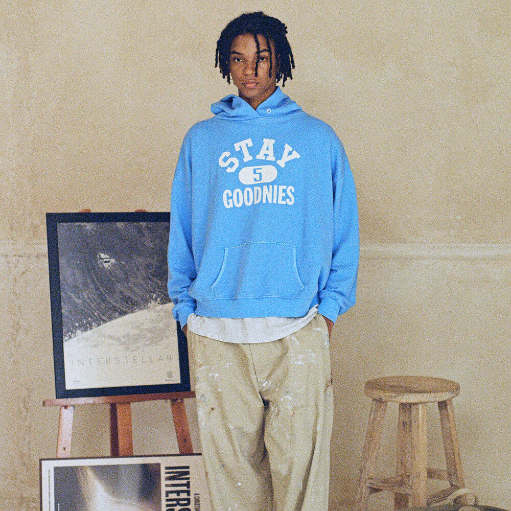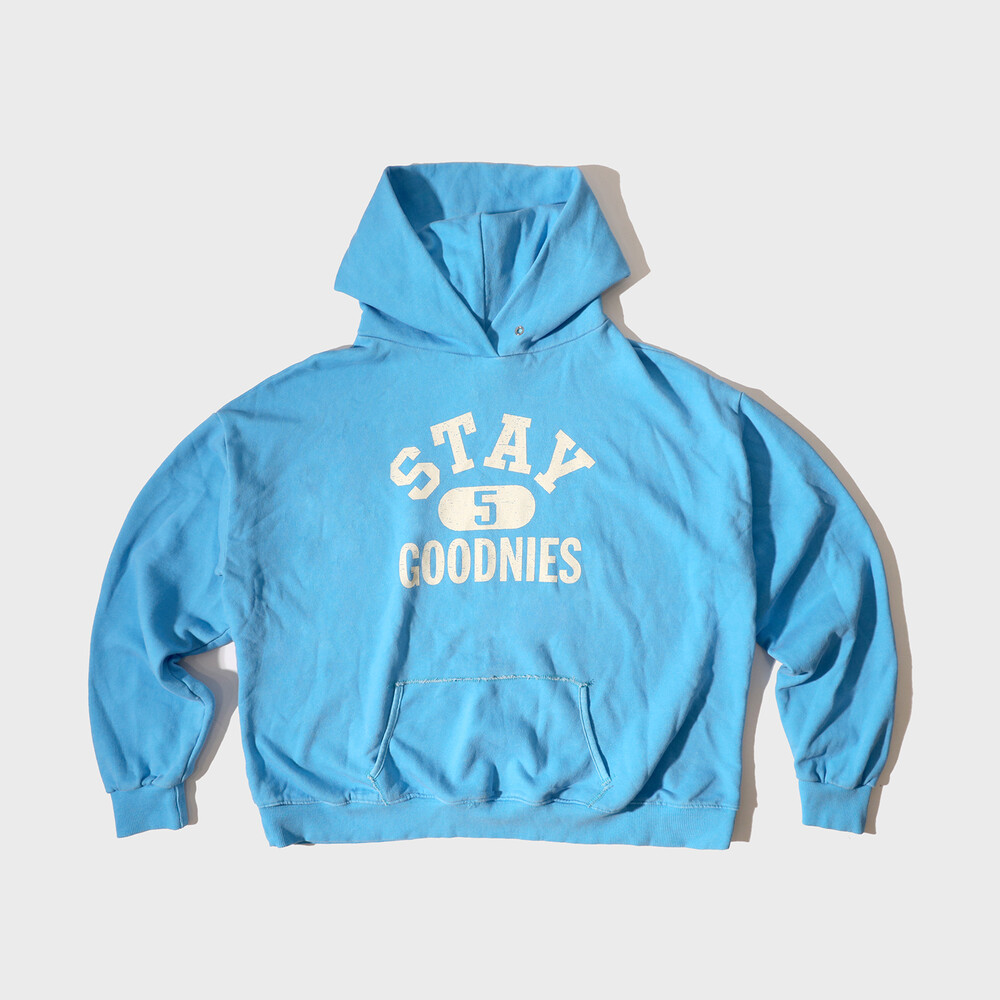 *GOODNIES _ “Wormhole" VINTAGE HOODIE. SUNFADE BLUE