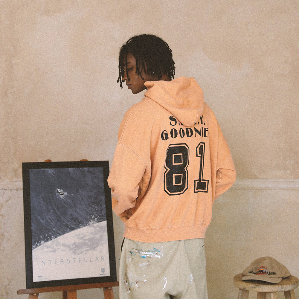 *GOODNIES _ “Wormhole" VINTAGE HOODIE. Sunfade Coral