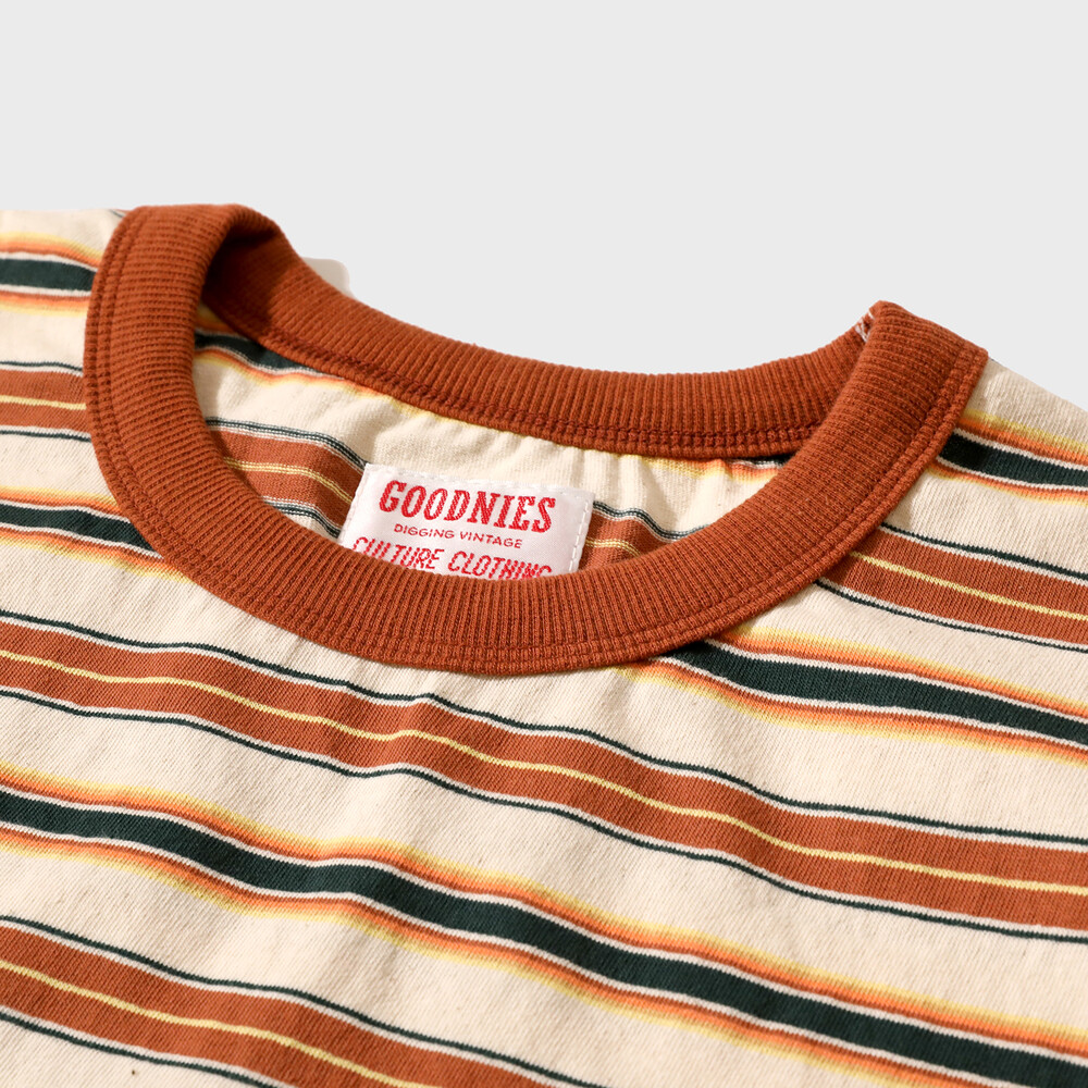 80년대 서퍼, 스케이트보더 룩 무드의 빈티지 스트라이프 원단