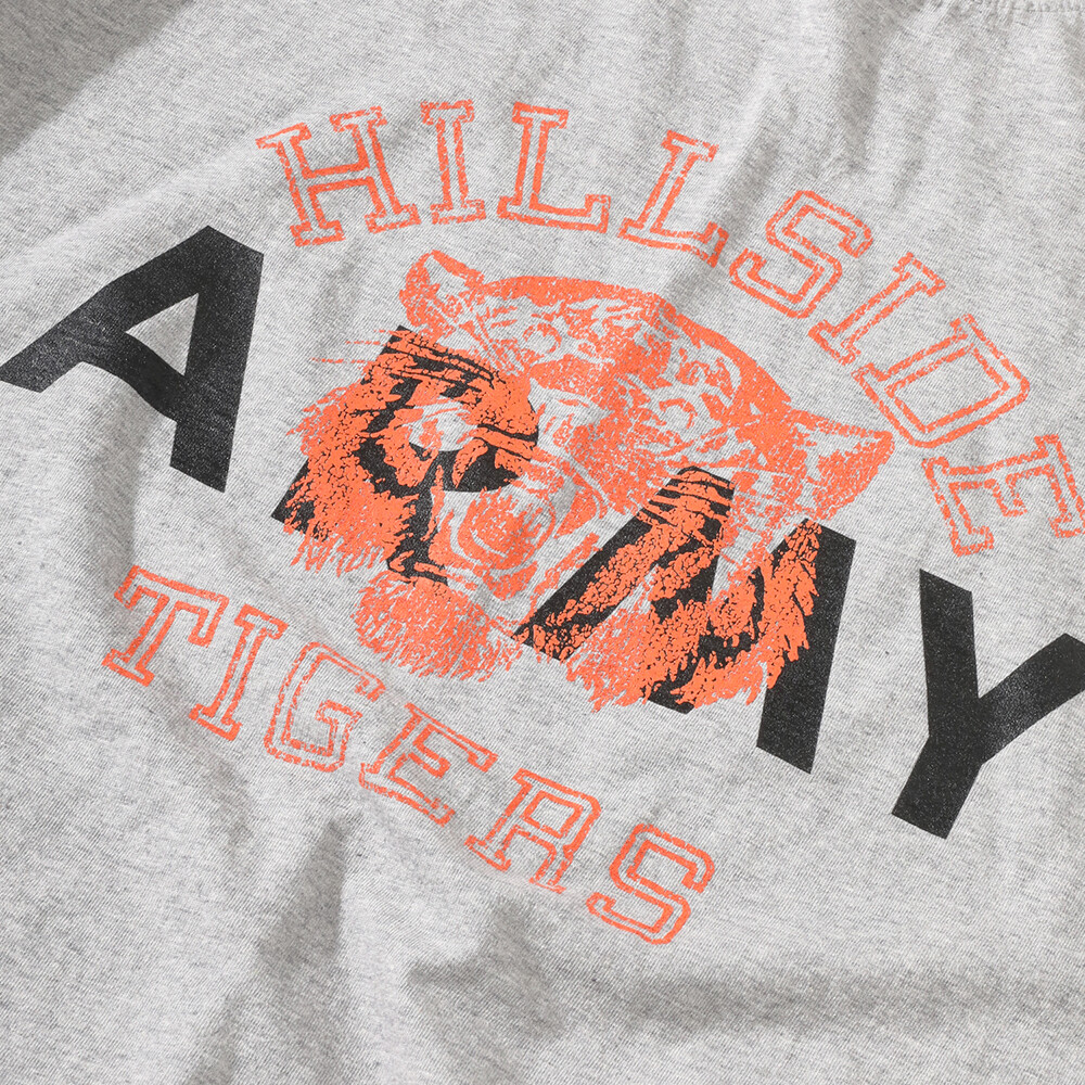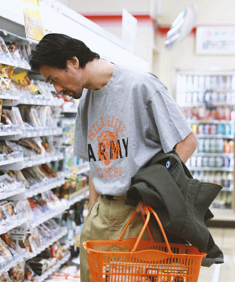 밀리터리 특유의 투박한 무드 위에 컬리지 감성의 강하게 포효하는 타이거 그래픽을 레이어드